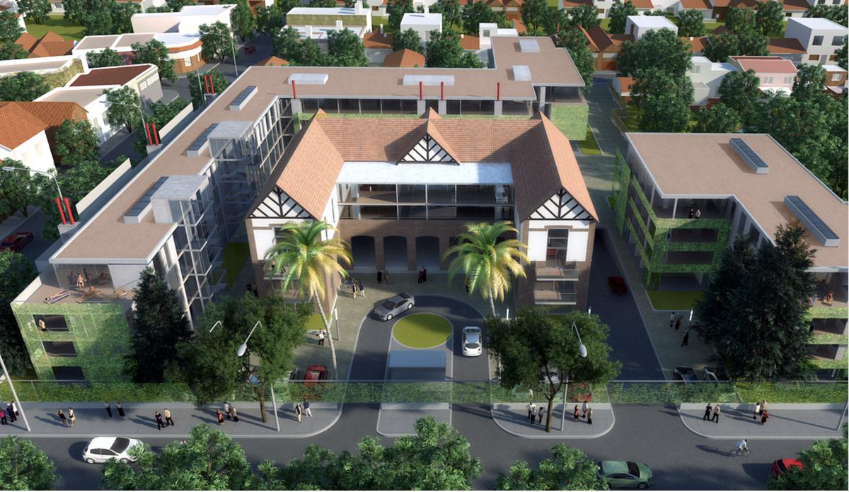 La arquitectura del conjunto cuenta con departamentos que rodean el edificio central, mezclando arquitectura tradicional y arquitectura contemporánea, confirmando una identidad única al conjunto.
